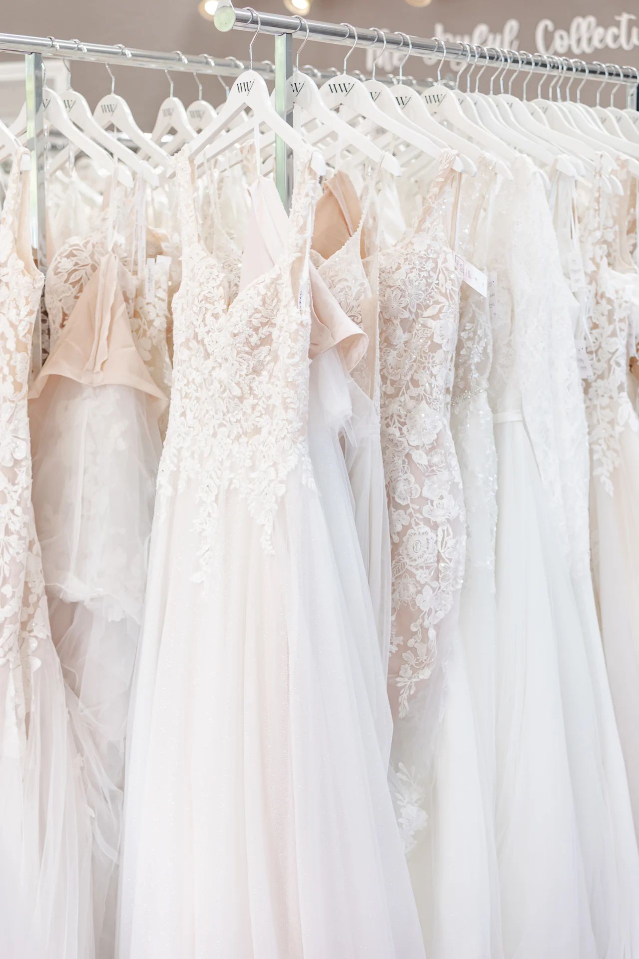 Bridal stores have to purchase all of the wedding dresses they have in-store in their inventory – if not, there wouldn’t be anything for brides to try on! The gowns that bridal stores have in their shop are considered “sample” wedding dresses. They are ordered from each bridal designer’s collection so that brides can try on dresses in person and don’t have to order their wedding dress without getting to experience it in person before they buy it.